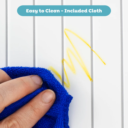 Kids can write words and numbers, create drawings and scribbles or play a fun game of noughts and crosses.