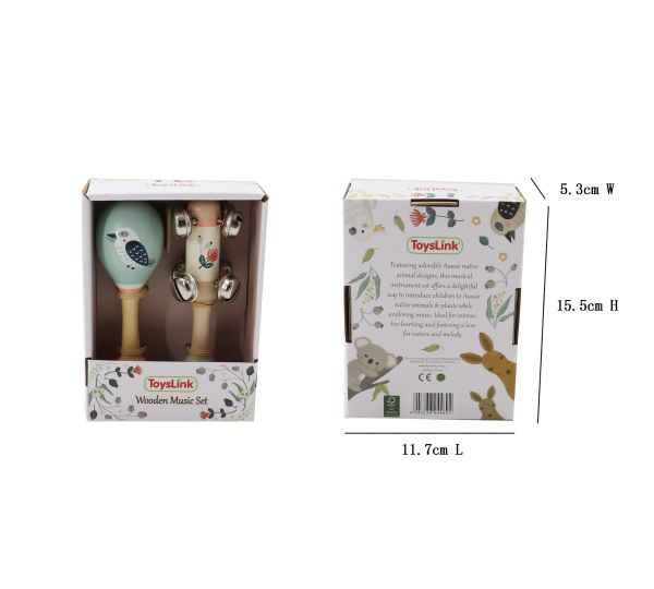 This cute wooden musical instrument set offers a delightful way to introduce children to Aussie native animals and plants while exploring music.