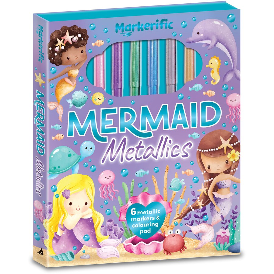 Mermaid Metallics Activity Folder , packed with colouring pages this sturdy folder has six pastel markers stored in a foam holder, The attractive package makes it easy to colour, store and carry!