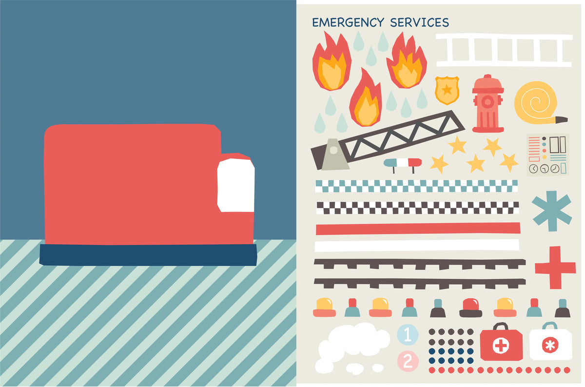 Follow the inspiration illustrations provided, or create your own unique designs, to add wheels, lights, ladders and more features to a variety of vehicles.